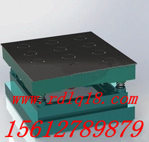 1、 將振動臺安裝在混凝土基礎上,基礎與槽鋼底座之間墊大于5mm厚的橡膠帶。地腳螺栓尺寸為M16×390mm,4只用戶自備,螺栓透出地面60mm,地腳螺栓位置如“圖2”。振動臺安裝后應保持臺面水平。