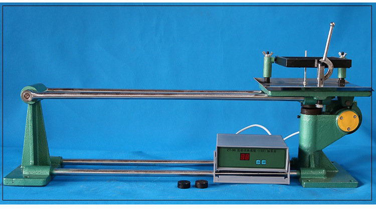 ZS-15型水泥膠砂試體成型振實臺主要由振動部件,機架部件和接近開關程控系統組成。工作時由同步電動機帶動凸輪轉動,使振動部件上升運動,升到定值后落下,而產生振動使水泥膠砂在力的作用下振實,該儀器采用接近開關計數自動控制,60次后自動停止,使用方便,計數準確。